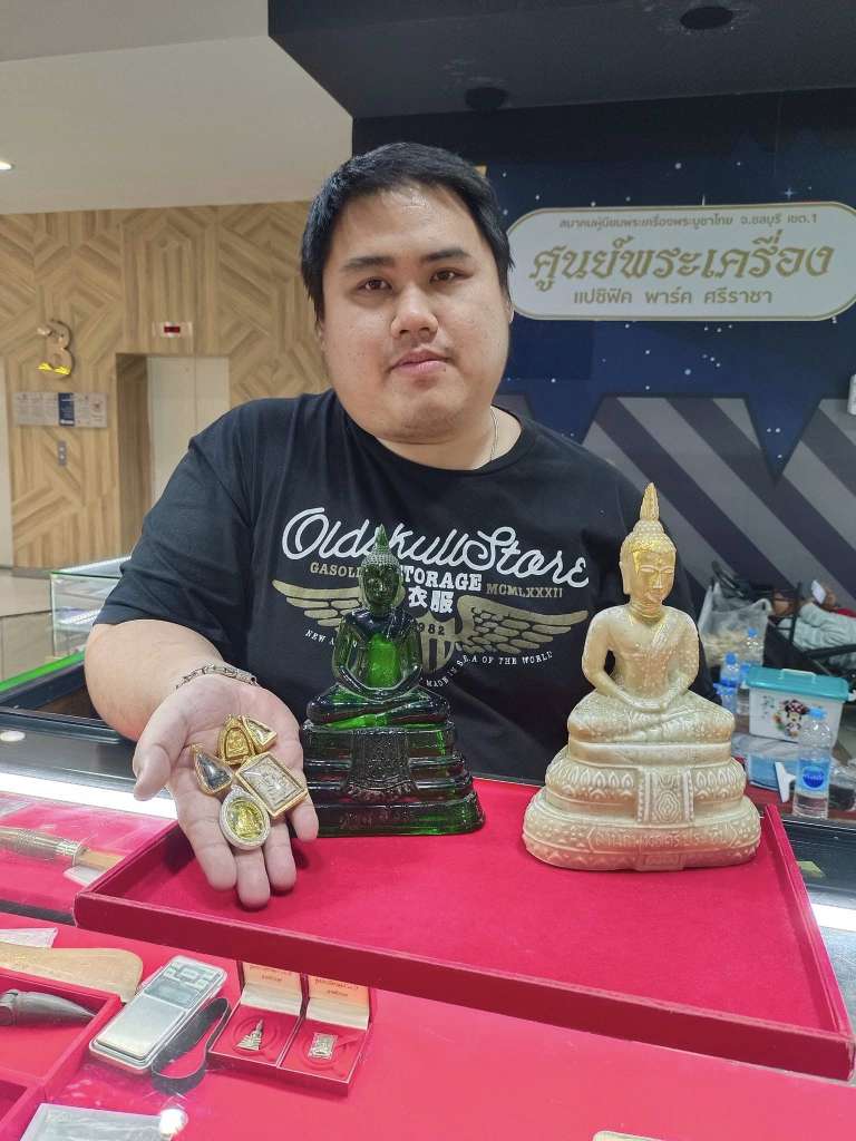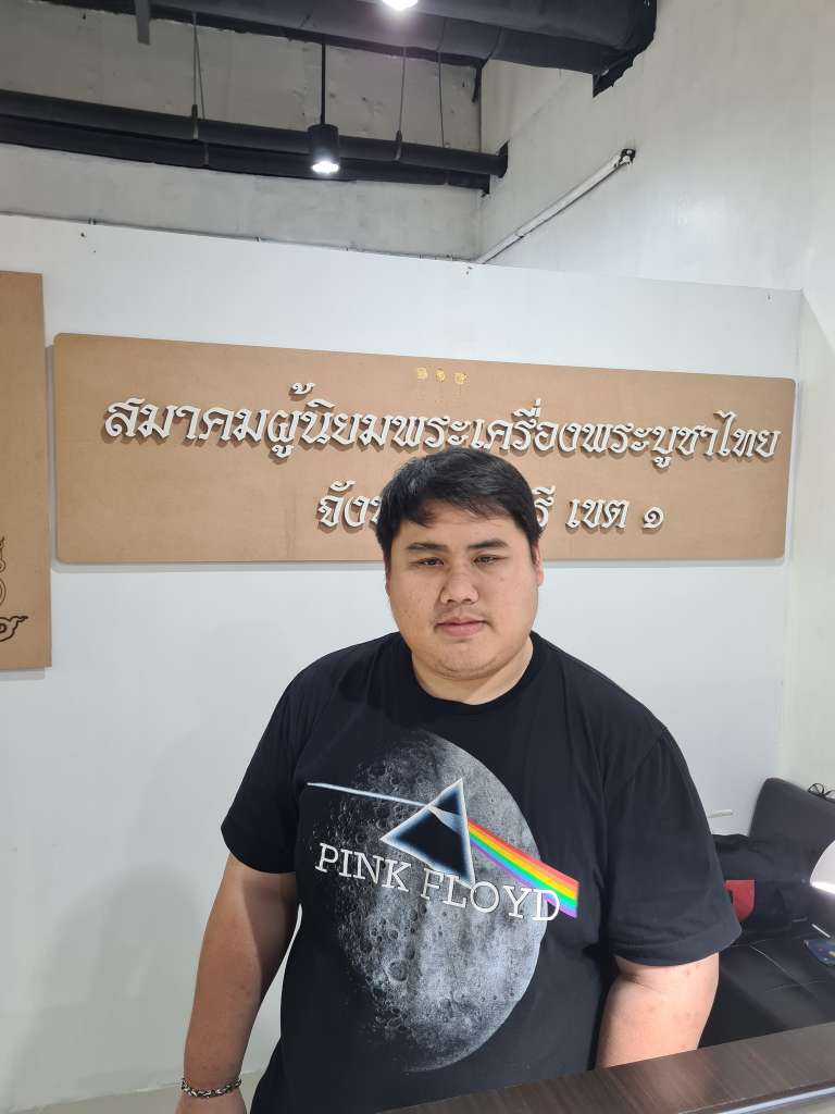 “จังหวะโชคดีที่ผมได้เจออาหน่อย ตอนแรกที่รู้จักนั้นผมไปเช่าตึกแกอยู่เพื่อเปิดร้านพระ เช่าตึกแกประมาณ 1 ปี แล้วห่างกันสักพักไม่ค่อยได้เจอ แล้วตอนหลังเห็นอาหน่อยโพสเกี่ยวกับศูนย์พระเครื่องโรบินสันศรีราชา สมัยนั้นยังไม่เป็นแปซิฟิคพาร์ค ไม่มีศูนย์พระเครื่อง อาหน่อยคิดจะเปิดศูนย์ให้คนมาเช่า ผมก็เลยมาลองดู โดยเป็นคนเช่าคนแรก ตอนนั้นมีอยู่ 3 ตู้ มีผมและเพื่อนผม 2 คน จากนั้นก็ตั้งเป็นชมรมพระเครื่อง ปัจจุบันมีอยู่ประมาณ 40 คน ตู้พระ 30 กว่าตู้ อาหน่อยก็ได้ตั้งเป็นชมรมพระเครื่องแปซิฟิค พาร์ค ศรีราชา โดยผมได้รับคัดเลือกเป็นประธนชมรมฯ และยังเป็นที่ทำการสมาคมจังหวัดชลบุรี เขต 1 ด้วย โดยมีผมเป็นรองประธานสมาคมฯ
